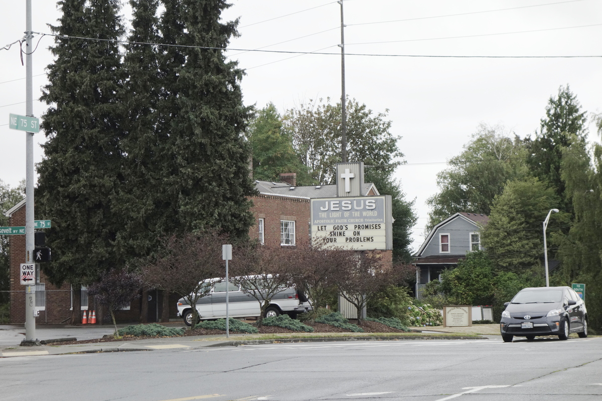 Photographs of churches embedded in their USian neighborhoods.
