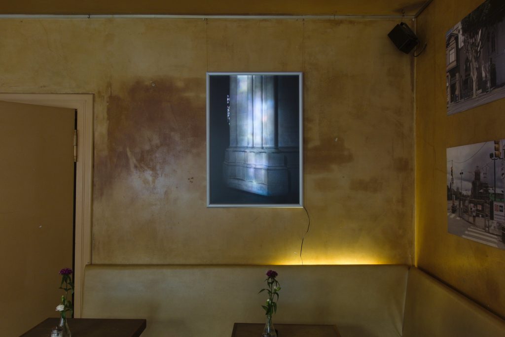 Exhibition at legendary Bar Czech in Halle/Saale (RIP), with interesting lighting and nicotine stained walls. Selection of 8 at 80×53cm, light box.